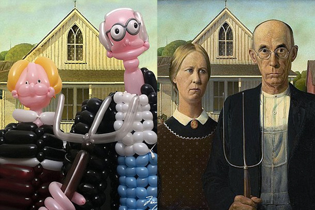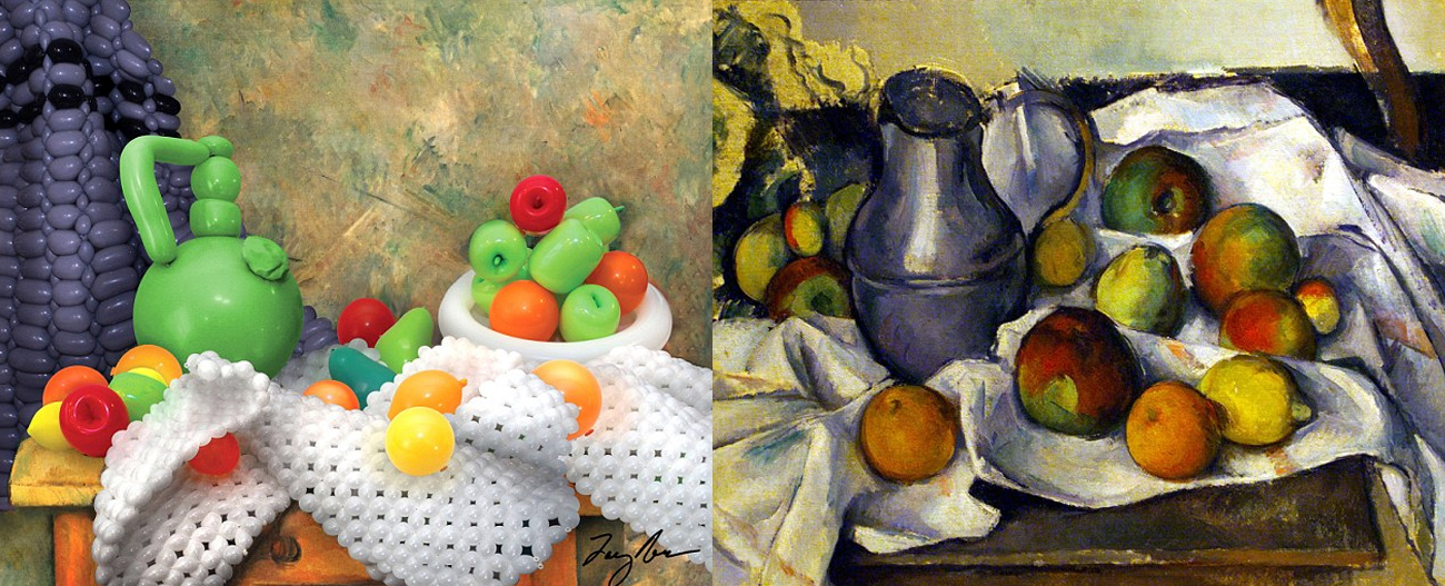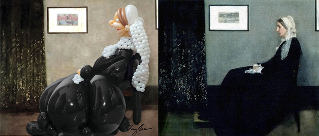 Ο Larry Moss επιλέγει να αναπαριστά κλασικά έργα τέχνης χρησιμοποιώντας «όπλα» από την προηγούμενη δουλειά του(ήταν μάγος), τα οποία δεν είναι άλλα από τα μπαλόνια!