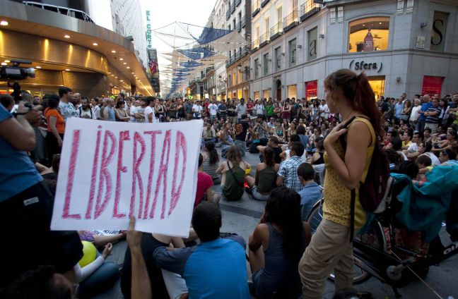 Οι διαδηλωτές, που ανήκουν στο λεγόμενο κίνημα 15M, γνωστοί και ως «Αγανακτισμένοι», απαιτούν αλλαγές στο πολιτικό και οικονομικό σύστημα της χώρας.