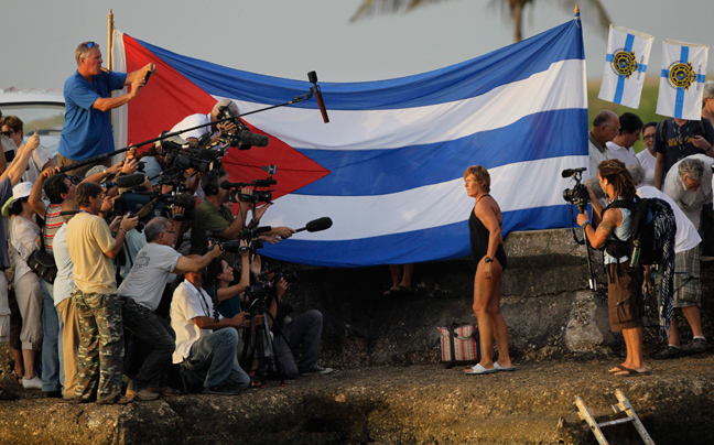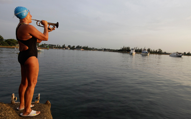 Ένα δύσκολο εγχείρημα έβαλε στόχο η 61χρονη Diana Nyad: Το σούρουπο χθες βούτηξε στη θάλασσα στην Αβάνα της Κούβας και άρχισε κολυμπώντας το ταξίδι της που έχει προορισμό την Φλόριντα των ΗΠΑ.