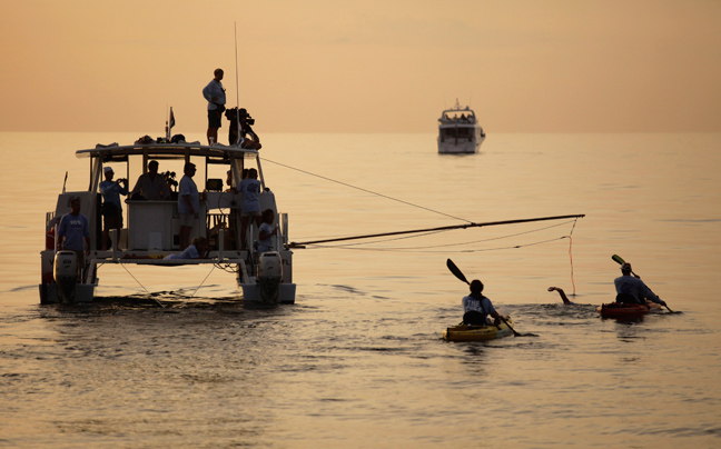 Καθώς όμως τα νερά που κολυμπά είναι γεμάτα καρχαρίες, η Nyad θα προστατεύεται από… ένα ηλεκτρικό πεδίο και δύτες που θα ελέγχουν την περιοχή για καρχαρίες και θα τους διώχνουν εάν πλησιάζουν την κολυμβήτρια.