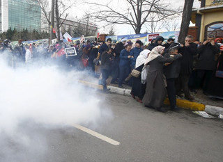 Η τουρκική αστυνομία χρησιμοποίησε δακρυγόνα και πλαστικές σφαίρες για δεύτερη ημέρα, προκειμένου να διαλύσει τη συγκέντρωση 2.000 και πλέον διαδηλωτών που είχαν συγκεντρωθεί έξω από τη μεγαλύτερη εφημερίδα της χώρας, μετά την απόφαση των αρχών ν’ αναλάβουν τον ελέγχό της.