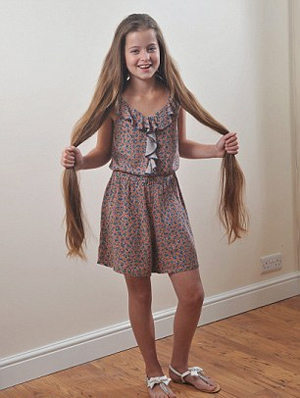 Τα μαλλιά του κοριτσιού φτάνουν μέχρι τα γόνατα, αν και επέλεξε να τα κόψει, ώστε να μπορεί να τα περιποιείται και να αλλάζει στυλ εύκολα, κάτι που τη δυσκολεύει. Μάλιστα, επέλεξε να δωρίσει τα κομμένα μαλλιά στο ίδρυμα «Little Princess Trust», το οποίο εξειδικεύεται σε περούκες παιδιών, που χάνουν τα μαλλιά τους λόγω της μάχης τους με τον καρκίνο.