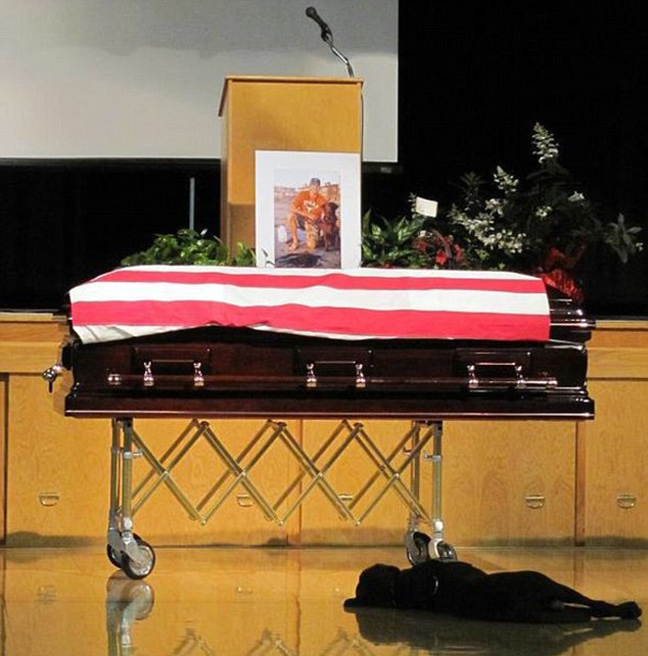 Κατά τη διάρκεια της κηδείας, η οποία έγινε την Παρασκευή στο Rockford από το πλευρό του άντρα δεν έφυγε ούτε στιγμή ο σκύλος του. Μόλις άρχισε η τελετή, το πιστό τετράποδο πλησίασε το φέρετρο του ιδιοκτήτη του και στη συνέχεια ξάπλωσε μπροστά του. Παρέμεινε εκεί ξαπλωμένο μέχρι το τέλος της τελετής.