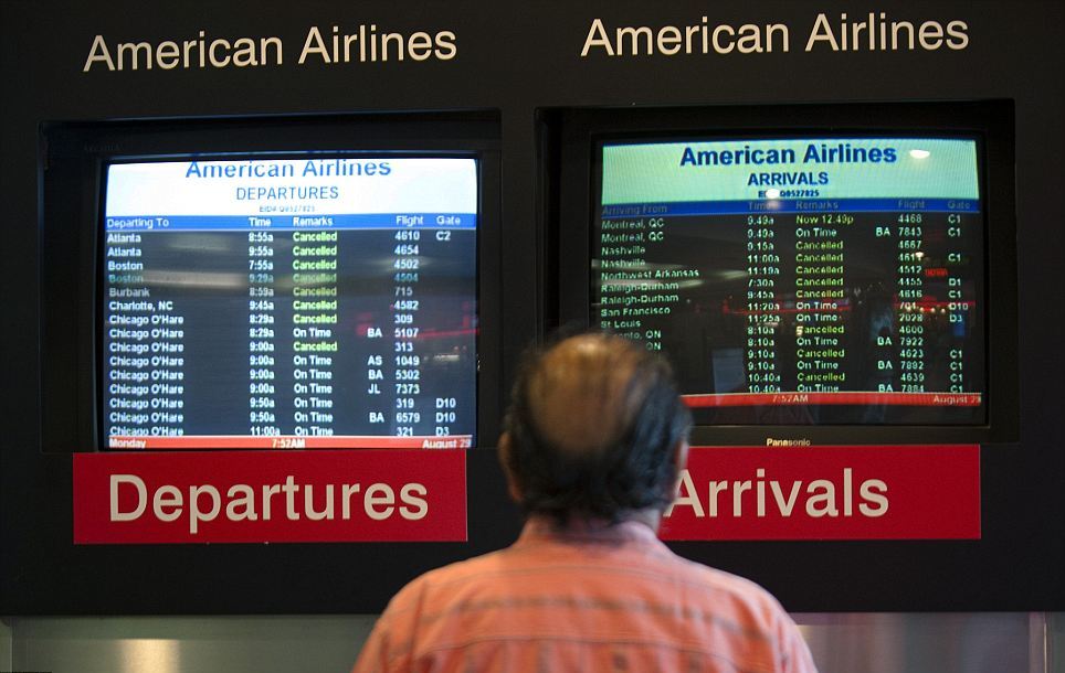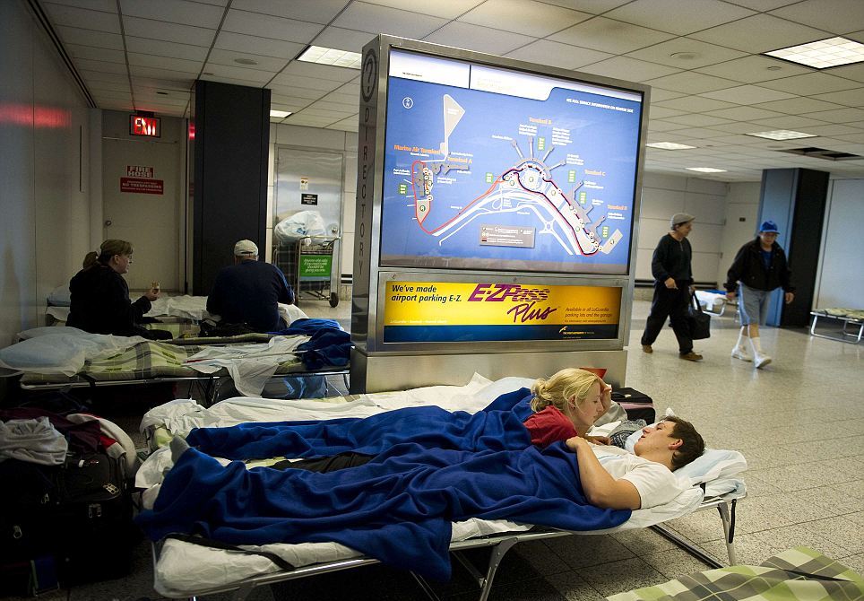Βρετανοί τουρίστες «κατασκηνώνουν» στα αμερικανικά αεροδρόμια, καθώς δεκάδες πτήσεις ακυρώνονται λόγω του περάσματος του τυφώνα Αϊρίν από την ανατολική ακτή των ΗΠΑ.