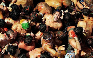 Οι δρόμοι της πόλης Buñol, στην Βαλένθια της Ισπανίας βάφονται κόκκινοι από τους 120 τόνους ντομάτας που ρίχνονται στη «μάχη» στο ετήσιο φεστιβάλ «Tomatina», το οποίο διαρκεί μόλις μία ώρα!