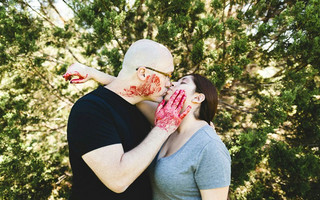 Ο Patrick σκέφτηκε να χρησιμοποιήσουν και μαχαίρια πίσω από την πλάτη σατιρίζοντας κατά κάποιο τρόπο τις παραδοσιακές φωτογραφίες αρραβώνων. Τελικά οι φωτογραφίες είναι… ματωμένες και έχουν σχολιαστεί, δικαίως, ως άκρως μακάβριες, ενώ το ζευγάρι είναι ενθουσιασμένο με το αποτέλεσμα. Οι ίδιοι παραδέχονται ότι γι’ αυτούς η όλη διαδικασία ήταν πολύ αστεία και πέρασαν την περισσότερη ώρα γελώντας.