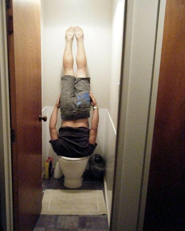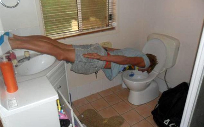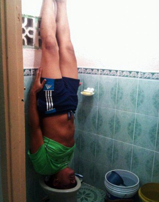 Οι περισσότεροι από αυτούς στηρίζουν τα πόδια τους στον τοίχο ή στο νιπτήρα ενώ το πρόσωπό τους βρίσκεται μέσα στη λεκάνη.