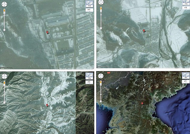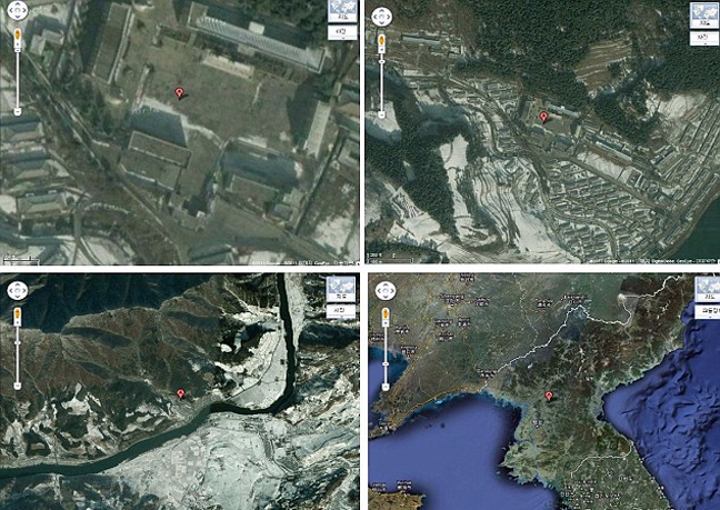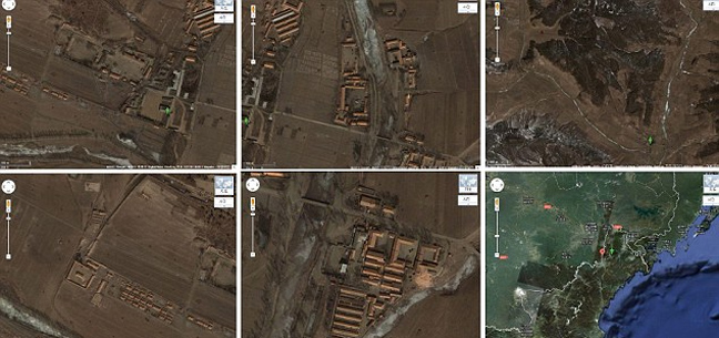 Σε μία από τις φωτογραφίες φαίνεται το στρατόπεδο συγκέντρωσης Yodok, στο οποίο εκτιμάται ότι βρίσκονται 50.000 Βορειοκορεάτες και το οποίο είναι κρυμμένο στα βουνά, αρκετά κοντά στην πρωτεύουσα Pyongyang.