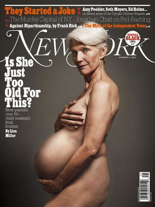 Ιδιαίτερα σοκαριστικό και αμφιλεγόμενο είναι το εξώφυλλο του περιοδικού New York που παρουσιάζει μία γυναίκα μεγάλης ηλικίας να κυοφορεί.