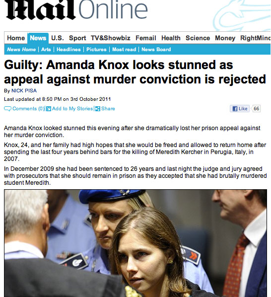 Στον αγώνα της μετάδοσης της τελικής έκβασης της δίκης της Αμάντα Νοξ, της φοιτήτριας που κατηγορούνταν ότι είχε σκοτώσει τη φίλη της, η Daily Mail έκανε μια μεγάλη γκάφα. Έβγαλε τη φοιτήτρια ένοχη ενώ το δικαστήριο την έκρινε αθώα για την ανθρωποκτονία!