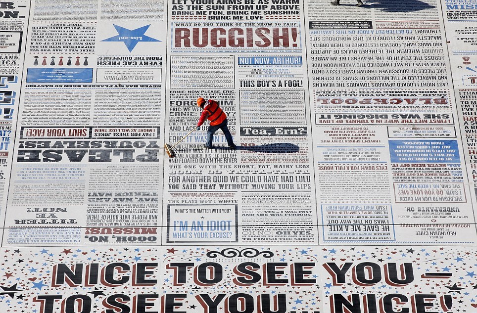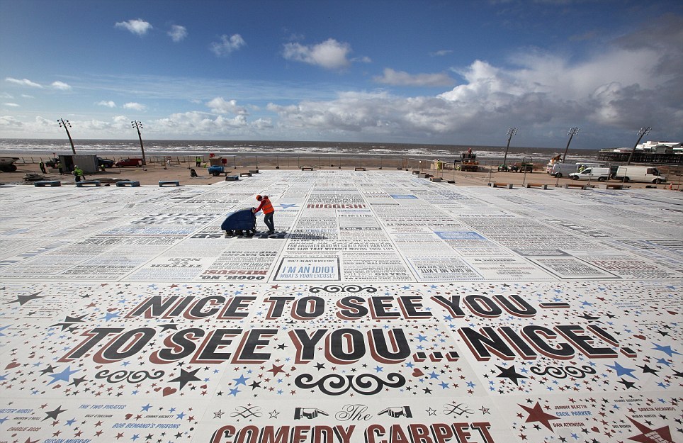 Πρόκειται για ένα γιγαντιαίο, τσιμεντένιο «χαλί» το οποίο «φιλοξενεί» αστείες ατάκες που χάρισαν γέλιο στους Βρετανούς και το οποίο θα παρουσιάσει στο Blackpool ο θρυλικός κωμικός Ken Dodd.