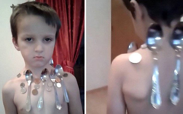 Η οικογένειά του κατέγραψε την περίεργη ικανότητά του σε βίντεο και αυτό έγινε πολύ γρήγορα viral συγκεντρώνοντας εκατοντάδες σχόλια. Μέχρι το τέλος του σύντομου κλιπ, τρία κουτάλια, 13 νομίσματα και πιρούνια φαίνονται να είναι κολλημένα στο στήθος του, όπως επίσης και στην πλάτη του.