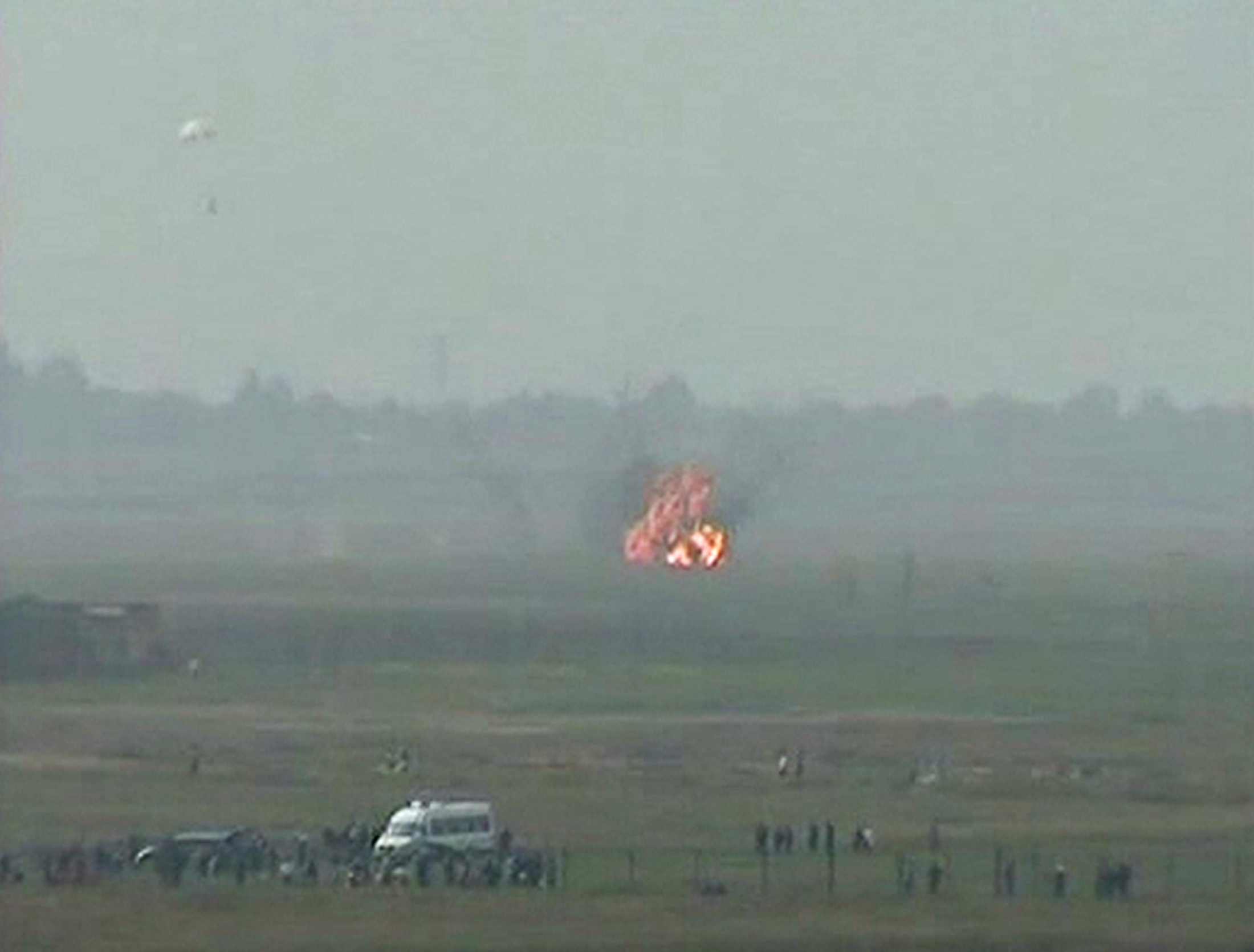 Ένα μαχητικό τζετ FBC-1- γνωστό επίσης ως Flying Leopard- τυλίχτηκε στις φλόγες μετά τη συντριβή του κατά τη διάρκεια επίδειξης στην επαρχία Pucheng στη βορειοδυτική Κίνα.