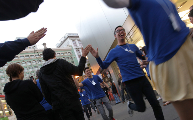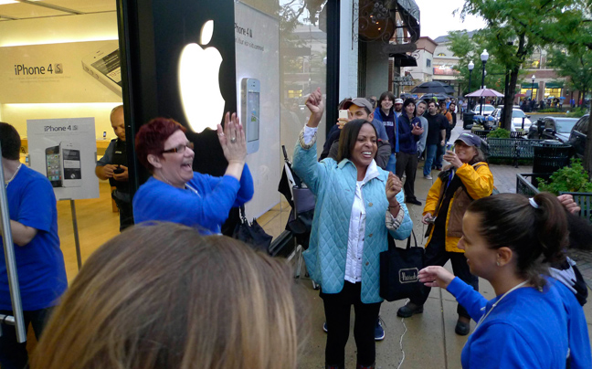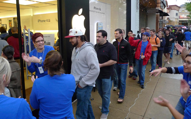 Δεν έλειψαν και ευτράπελα: υπάλληλοι των Starbucks μοίραζαν καφέδες στους ανθρώπους που στέκονταν για ώρες στις ουρές, ενώ κάποιοι φορούσαν ακόμη και μάσκες Στιβ Τζομπς παρακαλώντας… να αγοράσουν το νέο gadget της Apple.