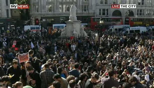 Αφετηρία των διαδηλωτών υπό το σύνθημα «κατάληψη στο χρηματιστήριο του Λονδίνου», ήταν ο καθεδρικός ναός του Αγίου Παύλου. Το συγκεντρωμένο πλήθος διαδήλωσε ειρηνικά ενάντια στην παγκόσμια οικονομική κρίση που πλήττει σχεδόν ολόκληρο τον πλανήτη.