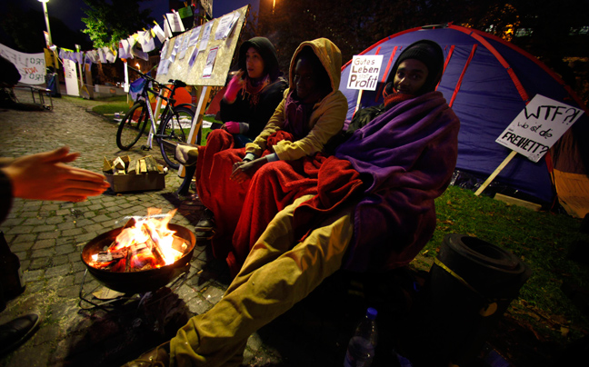 Δεκάδες διαδηλωτές κατασκήνωσαν έξω από τις εγκαταστάσεις της Τράπεζας, εκδηλώνοντας την οργή τους κατά τραπεζιτών και πολιτικών για την οικονομική κρίση.