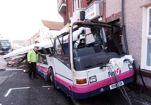 Δύο επιβάτες και ο οδηγός του λεωφορείου σώθηκαν από θαύμα όταν το όχημα στο οποίο επέβαιναν συγκρούστηκε με δύο αυτοκίνητα, στη συνέχεια με μια νταλίκα και κατέληξε «καρφωμένο» στην είσοδο ενός καταστήματος στην Swansea στη νότια Ουαλία και τελικά… κατέρρευσε και η οροφή του!