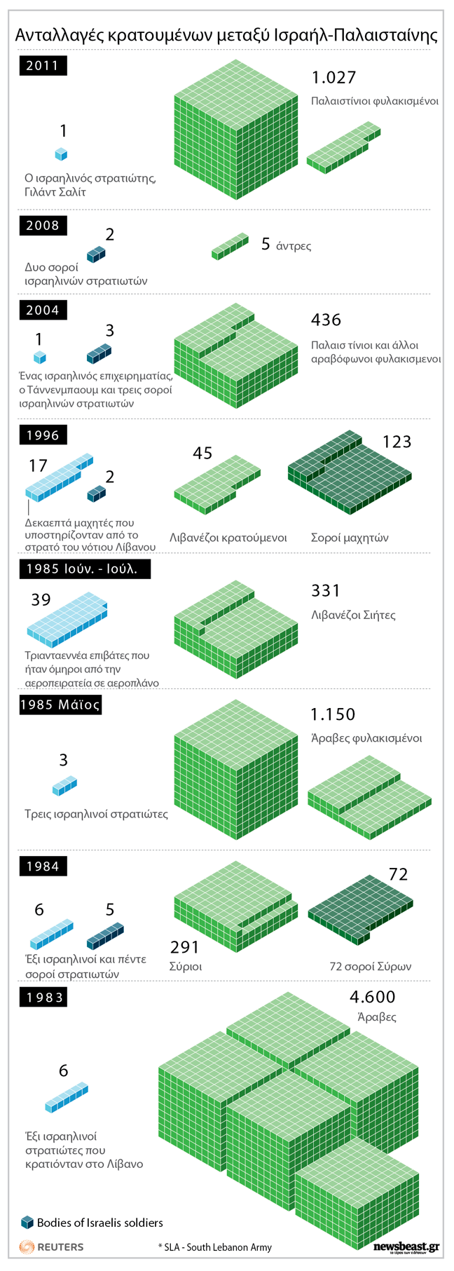 Χίλιους είκοσι επτά παλαιστίνιους φυλακισμένους θα απελευθερώσει τελικά το Ισραήλ, με αντάλλαγμα την απελευθέρωση του στρατιώτη Γκιλάντ Σαλίτ, ο οποίος κρατείται από τη Χαμάς στη Λωρίδα της Γάζας από το 2006.