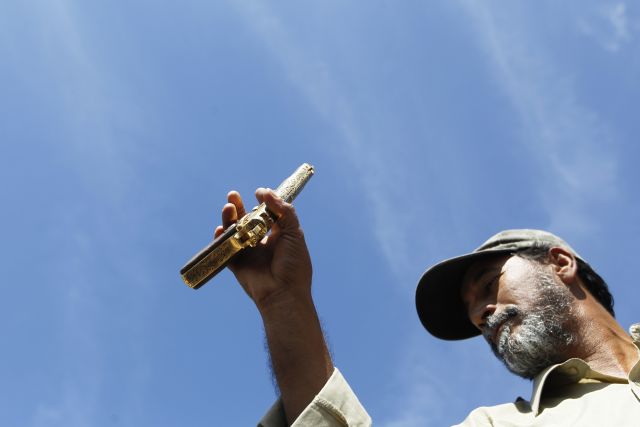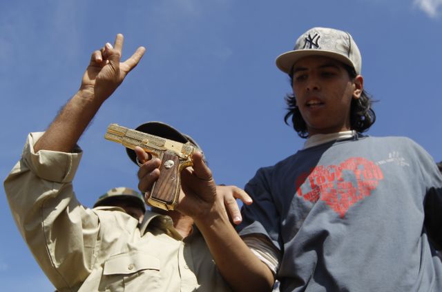 Το τέλος στο 42χρονο καθεστώς του Μουαμάρ Καντάφι φαίνεται πως έδωσε ο 18χρονος Ahmed al- Shaibani, ο οποίος μαζί με άλλους αντικαθεστωτικούς σε φωτογραφίες του ειδησεογραφικού πρακτορείου Reuters κρατά ένα χρυσό πιστόλι, το οποίο ισχυρίζονται ότι βρήκαν επάνω στον έκπτωτο ηγέτη της Λιβύης στη Σύρτη.