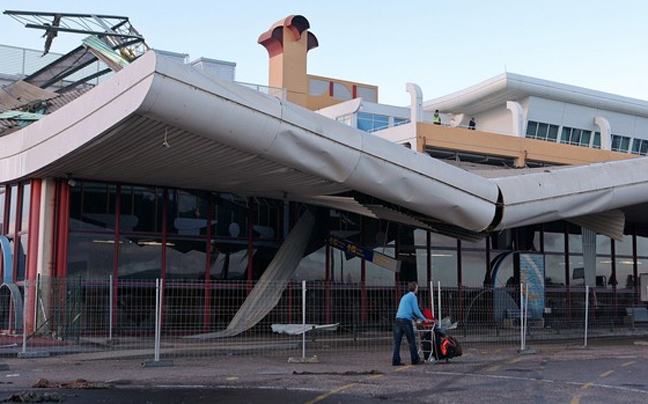 Μέρος της σκεπής κατέρρευσε νωρίς σήμερα το πρωί εξαιτίας των ισχυρών ανέμων που έπνεαν στην περιοχή. Μετά το συμβάν ανεστάλη για μερικές ώρες η λειτουργία του αεροδρομίου, με αποτέλεσμα να δημιουργηθεί χάος στις πτήσεις.
