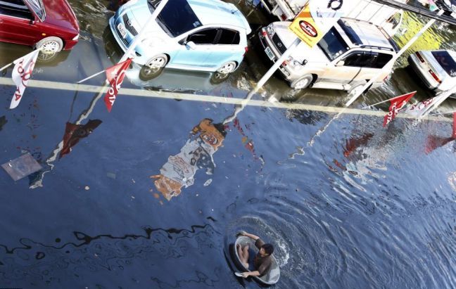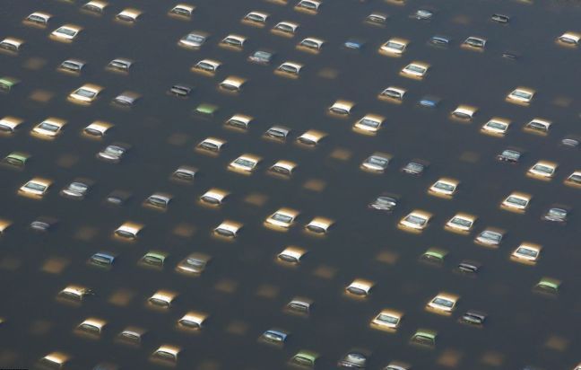 Τα βυθισμένα οχήματα έπεσαν κι αυτά «θύματα» των σφοδρών πλημμυρών που έπληξαν την περιοχή, καταστρέφοντας το εργοστάσιο.