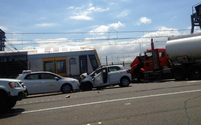 Η κυκλοφορία αποκαταστάθηκε πριν λίγο στη γέφυρα έπειτα από ένα σοβαρό δυστύχημα στο οποίο εμπλέκονται ένα άδειο βυτιοφόρο καυσίμων και πολλά ΙΧ αυτοκίνητα.
