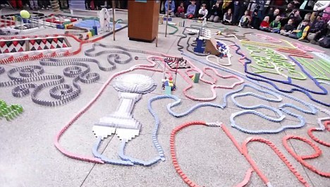Το show με τα ντόμινο ήταν η κύρια ατραξιόν για τους θεατές, οι οποίοι επισκέφθηκαν το μουσείο για να τιμήσουν παιχνίδια από όλο τον κόσμο.