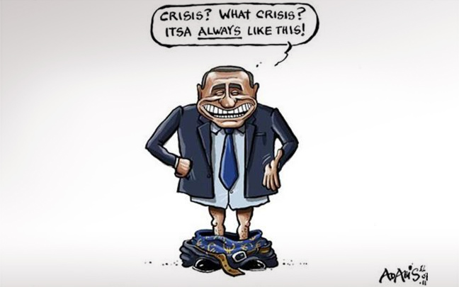 Οι πολιτικές εξελίξεις στην Ιταλία τροφοδότησαν την φαντασία των απανταχού σκιτσογράφων, οι οποίοι αφιερώνουν τα σημερινά τους σκίτσα στον Σίλβιο Μπερλουσκόνι.