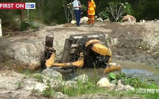 Επί ώρες ο εικονιζόμενος Αυστραλός έδινε μάχη με την αντοχή του και με τον χρόνο προσπαθώντας να κρατήσει το κεφάλι του- για την ακρίβεια οριακά τη μύτη του- έξω από το νερό, όταν ο εκσκαφέας του έπεσε μέσα σε φράγμα.