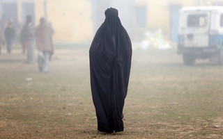 Μια γυναίκα που φοράει μπούρκα φεύγει από το εκλογικό κέντρο λίγα λεπτά αφότου ψήφισε στην πόλη της Deoband της Ινδίας.