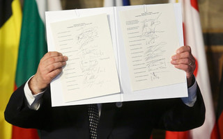 Πριν από την υπογραφή ο Πρόεδρος του Ευρωπαϊκού Συμβουλίου Ντόναλντ Τουσκ κάλεσε τους ηγέτες των 27 της Ε.Ε. να «αποδείξουν ότι είναι οι ηγέτες της Ευρώπης». «Η Ευρώπη, ως πολιτική οντότητα, είτε θα είναι ενωμένη, είτε δεν θα υπάρχει. Μόνο μία ενωμένη Ευρώπη μπορεί να είναι κυρίαρχη», τόνισε.