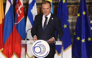Και συνέχισε: «Μόνο αν μείνουμε ενωμένοι θα μπορέσουμε να αντιμετωπίσουμε τις προκλήσεις και να παραδώσουμε στις μέλλουσες γενιές μια Ευρώπη πιο ευημερούσα, πιο κοινωνική και πιο ασφαλή» προσθέτοντας ότι «σήμερα ανανεώνουμε τους όρκους μας και επαναβεβαιώνουμε τη δέσμευσή μας σε μια αδιαίρετη Ευρώπη».