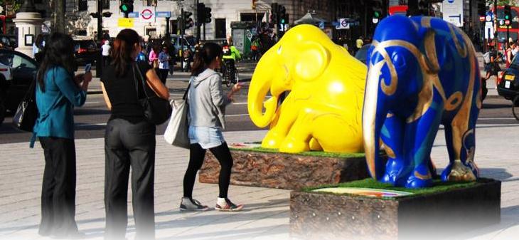 Πρόκειται για την «Παρέλαση Ελεφάντων», μια έκθεση 162 γλυπτών που έχουν διακοσμήσει καλλιτέχνες και διασημότητες, όπως ο ηθοποιός Ρούπερτ Γκριντ (ο Ρον του Χάρι Πότερ), με στόχο να ευαισθητοποιήσουν τον κόσμο για τη σωτηρία των παχύδερμων αυτών.