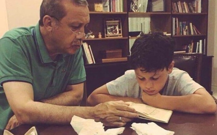Μια φωτογραφία που δείχνει τον τούρκο πρόεδρο Ρετζέπ Ταγίπ Ερντογάν να διδάσκει στον εγγονό του το Κοράνι φέρνει στη δημοσιότητα η εφημερίδα Yeni Şafak. Πρόκειται για μια εικόνα που δείχνει ένα διαφορετικό πρόσωπο του τούρκου ηγέτη σε σχέση με το σκληρό προφίλ που προβάλλει, ιδιαίτερα τον τελευταίο καιρό.