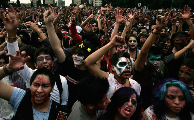 Περισσότερα από 9.000 ζόμπι ξεχύθηκαν στους δρόμους του Σάο Πάολο στο Μεξικό, διψώντας για αίμα, στη μεγαλύτερη πορεία ζόμπι που οργανώθηκε ποτέ.