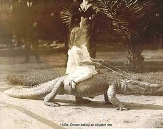 Στη ρετρό αυτή φωτογραφία απεικονίζεται ένα κοριτσάκι να ιππεύει έναν αλιγάτορα και αν και η προέλευση της δεν είναι γνωστή, δεν έχει αμφισβητηθεί η γνησιότητα της.