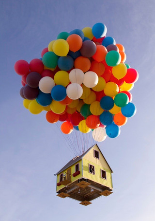 Η σειρά του National Geographic «How Hard Can it Be?» («Πόσο δύσκολο μπορεί να είναι;») εμπνεόμενη από την ταινία «Up», κατασκεύασε ένα μικρό σπίτι 16 τ.μ. και χρησιμοποιώντας 300 μπαλόνια φουσκωμένα με ήλιο, μπόρεσε να το σηκώσει στον αέρα!