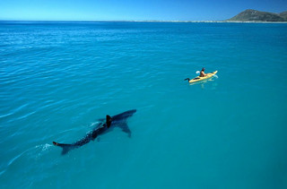 Ο υδροβιολόγος Trey Snow ερευνούσε μαζί με την ομάδα του μία περίεργη συμπεριφορά λευκών καρχαριών οι οποίοι κολυμπούσαν κοντά στις ακτές. Κάποια στιγμή, ενώ βρισκόταν με ένα πλεούμενο, ένας καρχαρίας τον πλησίασε. Ο φωτογράφος άγριας φύσης Thomas Peschak που βρισκόταν στο σημείο με ένα άλλο πλεούμενο κατάφερε και απαθανάτισε τη στιγμή.