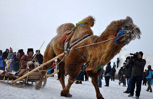Οι καμήλες, που θεωρούνται τα «καράβια της ερήμου», όπως φαίνεται και στις φωτογραφίες φαίνεται πως τα καταφέρνουν πολύ καλά και στις χιονισμένες τούνδρες!