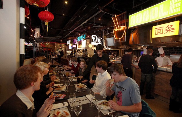 Οι πελάτες μπορούν να επιλέξουν τα συστατικά του φαγητού τους και να παρακολουθούν τον σεφ, έναν από τους 36, που ετοιμάζει το πιάτο τους.