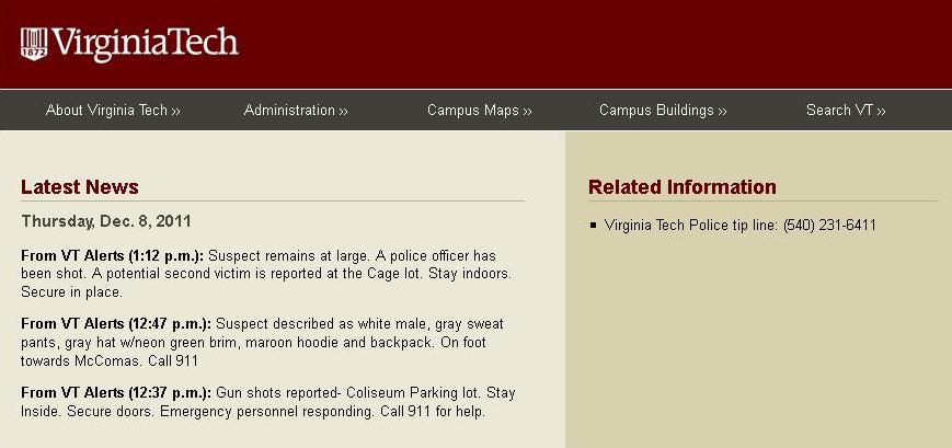 Ένας αστυνομικός έχασε σήμερα τη ζωή του στο χώρο του πανεπιστημίου Virginia Tech στο Blackburg, όπως αναφέρεται σε μήνυμα στην ιστοσελίδα του ιδρύματος.