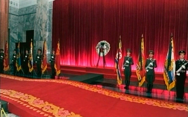 Εικόνες από τη σορό του ηγέτη της Βόρειας Κορέας Κιμ Γιονγκ Ιλ που απεβίωσε το Σάββατο μετέδωσε η τηλεόραση της χώρας από το Kumsusan Memorial Palace στην Πιονγιάνγκ.
