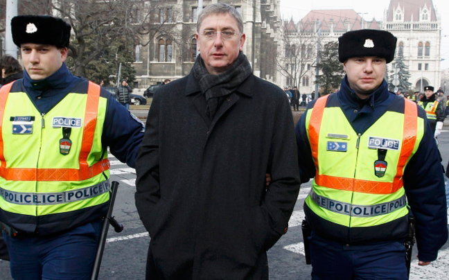 Ανάμεσα στους πολιτικούς που απομάκρυνε η αστυνομία από την είσοδο της Βουλής – όπου νωρίτερα είχαν αλυσοδεθεί βουλευτές – ήταν ο πρώην Σοσιαλιστής πρωθυπουργός Φέρεντς Γκιούρσανι.