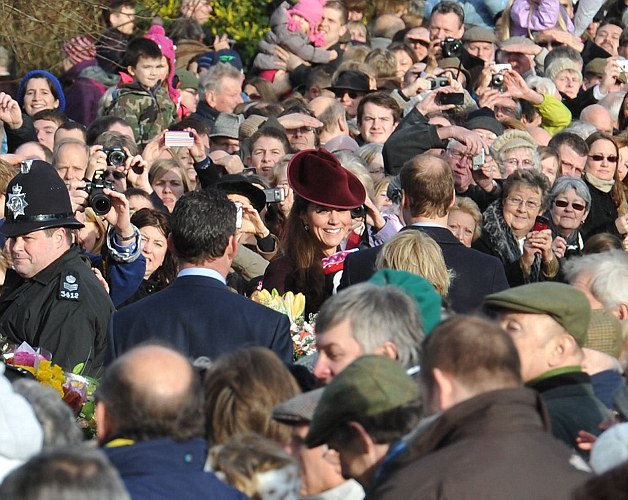 Πλήθος κόσμου συγκεντρώθηκε στην περιοχή για να δει από κοντά τη βασιλική οικογένεια και να φωτογραφηθεί με την Κέιτ Μίντλετον.
