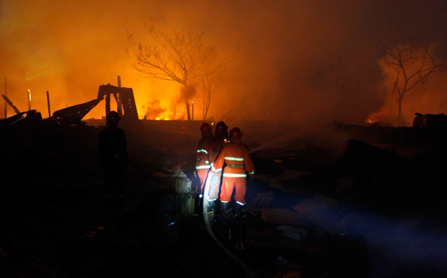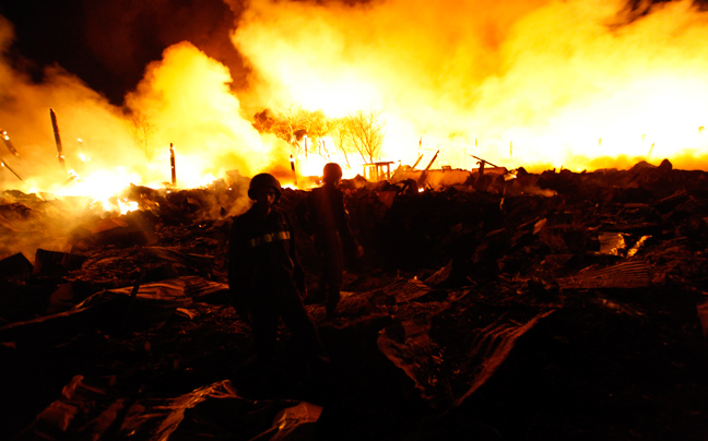 Είκοσι λεπτά μετά την άφιξη των οχημάτων της πυροσβεστικής, σημειώθηκαν τέσσερις ισχυρές εκρήξεις σε παρακείμενες αποθήκες, προκαλώντας το θάνατο κατοίκων της περιοχής και πέντε πυροσβεστών.