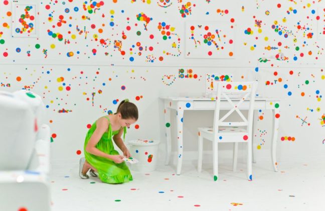 Αυτό που βλέπετε στις παρακάτω φωτογραφίες είναι αυτό που συμβαίνει ότι δίνει κανείς μερικές χιλιάδες χρωματιστά αυτοκόλλητα σε παιδιά μέσα σε ένα… κατάλευκο δωμάτιο με μοναδικό κανόνα… να εκφραστούν ελεύθερα!