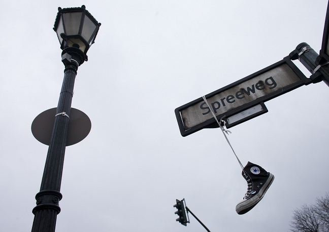 “Θέλουμε μόνο να κρατήσουμε ψηλά τα παπούτσια μας, όχι να τα πετάξουμε”, είπε ένας από τους διαδηλωτές, ο Γιούργκεν Γιάνεν, αναφερόμενος στο περιστατικό του 2008 όταν ένας οργισμένος ιρακινός δημοσιογράφος πέταξε ένα παπούτσι του στον πρώην πρόεδρο Τζορτζ Μπους.