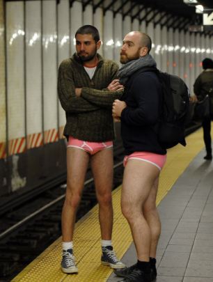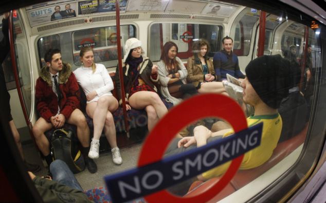 Πρόκειται για το ετήσιο γεγονός που αποκαλείται «Ημέρα χωρίς παντελόνια στο μετρό» (No Trousers Tube Ride – ‘No Pants day’), το οποίο ξεκίνησε το 2001 στη Νέα Υόρκη και μέχρι σήμερα έχει επεκταθεί σε 60 πόλεις παγκοσμίως, όπως η Ουάσινγκτον, η Μαδρίτη, το Τορόντο, το Λονδίνο και το Μεξικό.