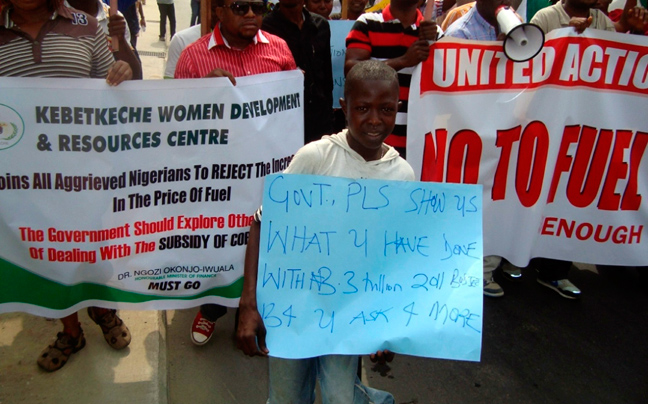 Η κυβέρνηση της Νιγηρίας αποφάσισε την κατάργηση της επιδότησης των καυσίμων, απόφαση που είχε ως αποτέλεσμα να διπλασιαστεί και πλέον η τιμή των καυσίμων από την 1η Ιανουαρίου στη χώρα αυτή, στην οποία η πλειοψηφία των πολιτών ζει με λιγότερα από δυο δολάρια την ημέρα.
