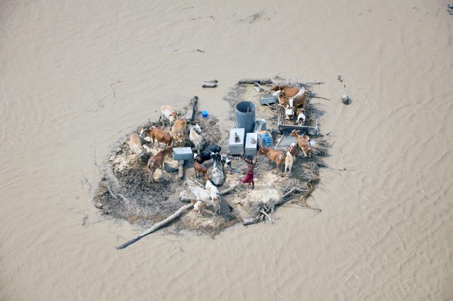 Κάτοικοι έχουν αποκλειστεί σε αυτοσχέδιες «νησίδες» και περιμένουν με αγωνία την ανθρωπιστική βοήθεια που διανέμεται με ελικόπτερα του στρατού.